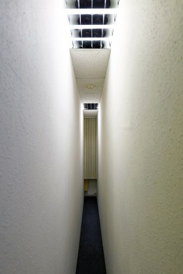 Limbo hardware is a place where meaninglessness—through the absence of narrative—becomes a backdrop for any number of branching stories. The author steps into the background, provides no code, and functions much like a scanner. The installation is a “story for the eye”—a narrative perceived simultaneously through the retina and the body. Each segment (office, corridor, etc.) is a single film frame torn out—or rather, a film that lasts exactly one frame. The frames before and after are left entirely to the viewer.
