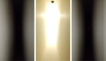 An indeterminate space with standard safety equipment: a camera on the ceiling, an alarm on the rear wall with a flashing red light showing the alarm is on. This place is entirely in darkness, but it’s clear that it’s securely guarded. When we try to look inside, a powerful light flashes, so in the blink of an eye we can see the whole space, but the next moment we’re dazzled by the light. The image briefly remains in the mind. There’s nothing here.
