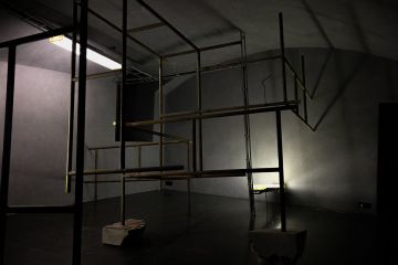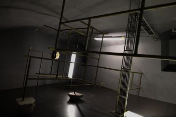 A opravdu: struktura, kterou máme nyní před sebou, zábradlí velmi nápadně připomíná. Zde je však oproštěno od své původní a předpokládané funkce i některých obvyklých vlastností. Jeho členění je nelogicky zhuštěné a jeho pozice ignoruje půdorys místnosti, tedy kontext, ve kterém je umístěno. Jako by sem proniklo z nějaké alternativní reality, v níž má všechno jiný sklon i orientaci. Zneklidňující až tísnivou atmosféru podtrhuje ještě blikající světlo zářivek, umístěných v instalaci na základě stejné iracionální logiky, která nás nenechává na pochybách, že s realitou, které jsme zde svědky, není něco v pořádku. Podobně jako „glitch“ v počítačové hře, který nám připomene, že všechno, co prožíváme, je pouhou a nedokonalou simulací, nám však může i tato modifikovaná verze reality pomoci nahlédnout za její běžný povrch. Jiným příkladem ze světa mainstreamové kultury může být film Matrix, inspirováný románem Williama Gibsona Neuromancer a jeho konceptem kyberprostoru: Matrix je počítačový systém simulující realitu konce dvacátého století, o jehož existenci se hlavní hrdina dozvídá právě díky drobným chybám a nedostatkům, jako jsou nelogický výskyt anebo absence důležitých detailů či nevysvětlitelné opakování již zobrazeného.