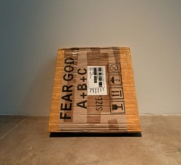 Objednávka z e-bay, jedna z milionu položek pohybujících se po planetě, opatřená štítkem k rozpoznání na terminálech, doručená zákazníkovi, přepravní krabice určená k vyhození do koše, nepovšimnutí hodná. Někdo neviditelný se ji ale rozhodl použít jako médium pro tajemnou zprávu „Fear God“ („Boj/te se Boha“). Ztraceno v překladu? Černá labuť? Socha Marnosti? Měli bychom zavolat a zeptat se pana Weie /!/, jehož telefonní číslo je na nálepce na straně balíku...