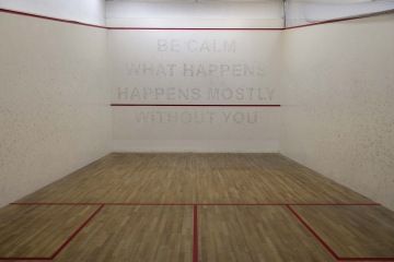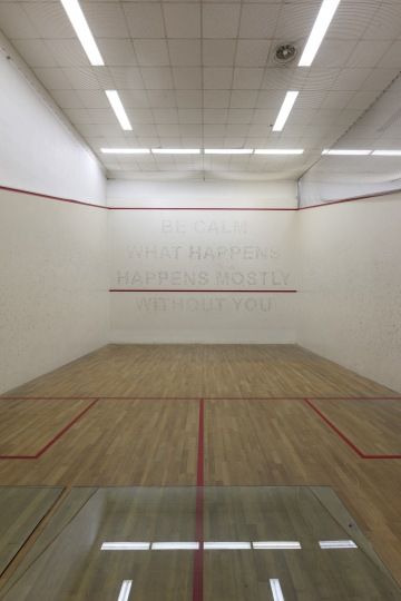 stopy squashových míčků na opuštěném squashovém kurtu / marks made by squash balls on an abandoned squash court